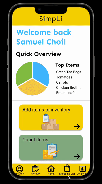Flesh out the rest of the app’s functionalities. SimpLi’s other main function is “Smart Analytics” which will predict when an item will run low on stock.