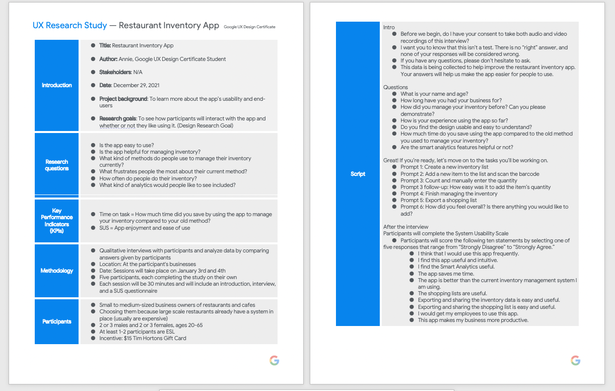 Before I conducted my research, I assumed that many restaurant owners and workers did not have a system to track their inventory, but they each had something similar; they all did by pen and paper, which took a lot of time and effort. I conducted interviews using a script I wrote with a few local small to medium-sized business owners and employees. I also conducted secondary research, such as competitive audits.